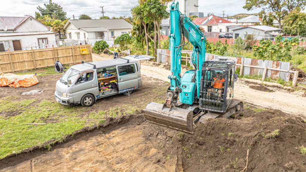 Two more foundations are in the works as we kick off another project this week. The team has been busy on the new boundary fences while the crew at Dowman Contracting have the digger on-site carving out the footprint. These aren’t just any houses – they’re two brand-new, healthy homes designed to raise the bar for the Whanganui rental market. High quality, low maintenance, and officially underway.