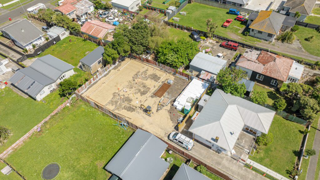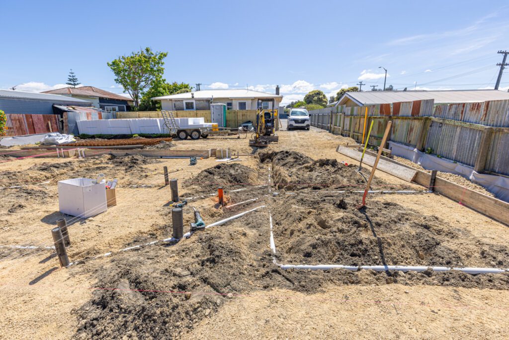 At Puriri Street, our latest triplex housing project is well underway. With backfilling complete, the site is being prepared for the next big milestone – the slab pour. The team from Thompson Plumbing & Drainage are onsite connecting pipework and finalising pre-slab work, setting the next stage of the construction.