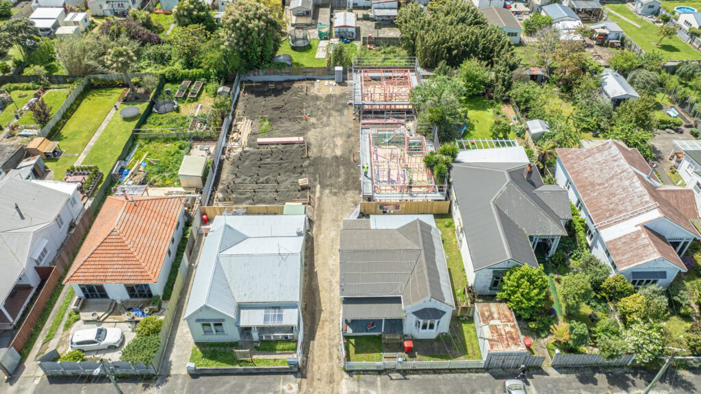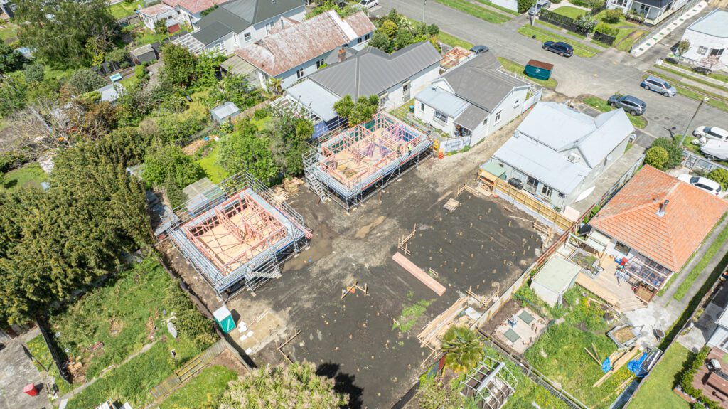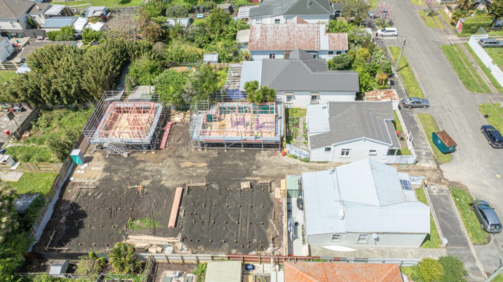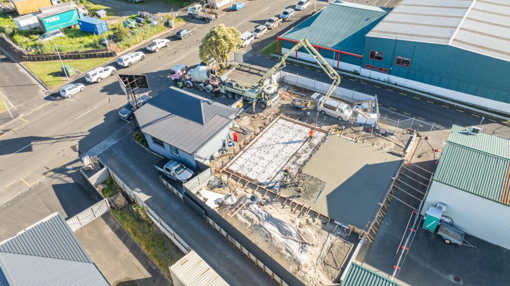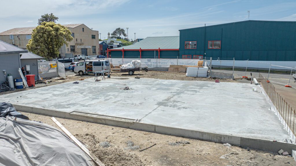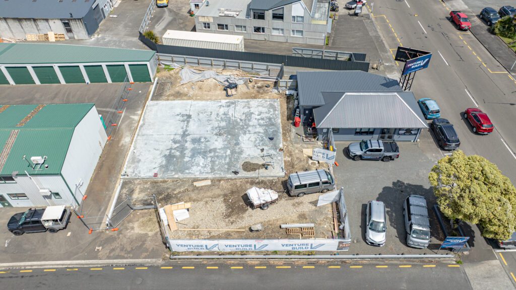 It’s been a week of concrete across our sites. At Venture Build HQ, the slab for our new workshop and offices was poured on Monday. Meanwhile, the weather played ball long enough for another slab to go down at our new triplex project on Puriri Street.