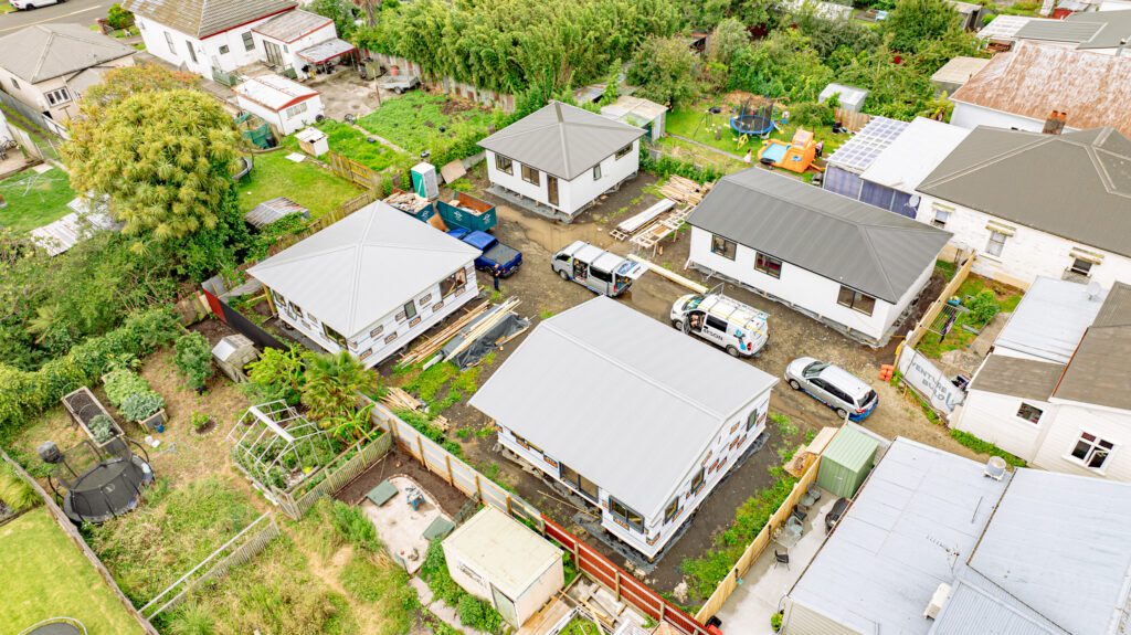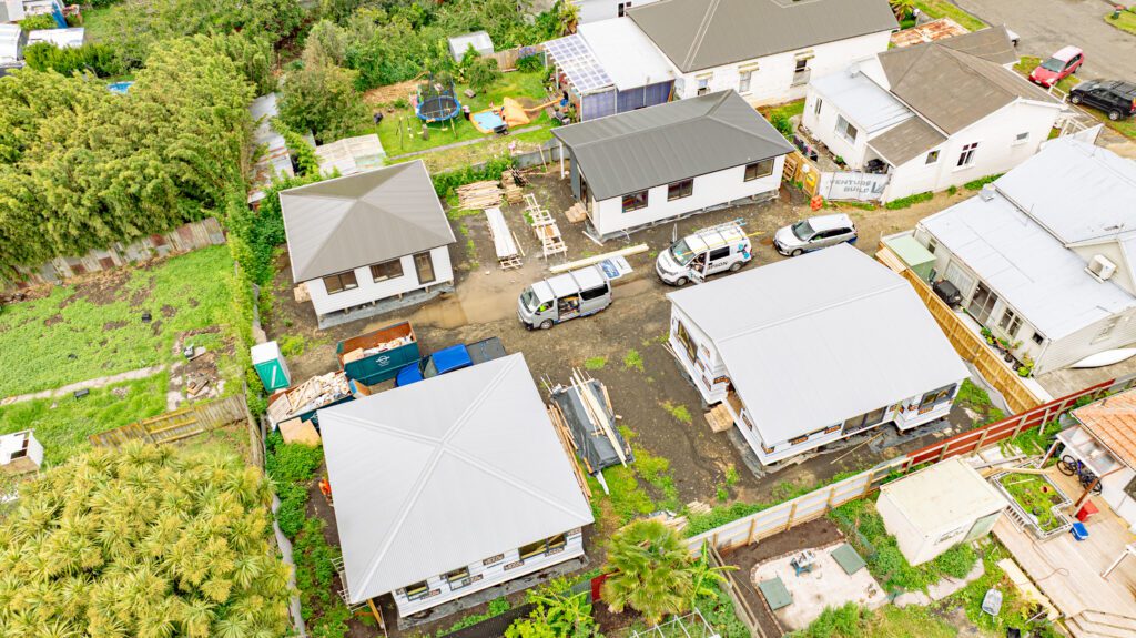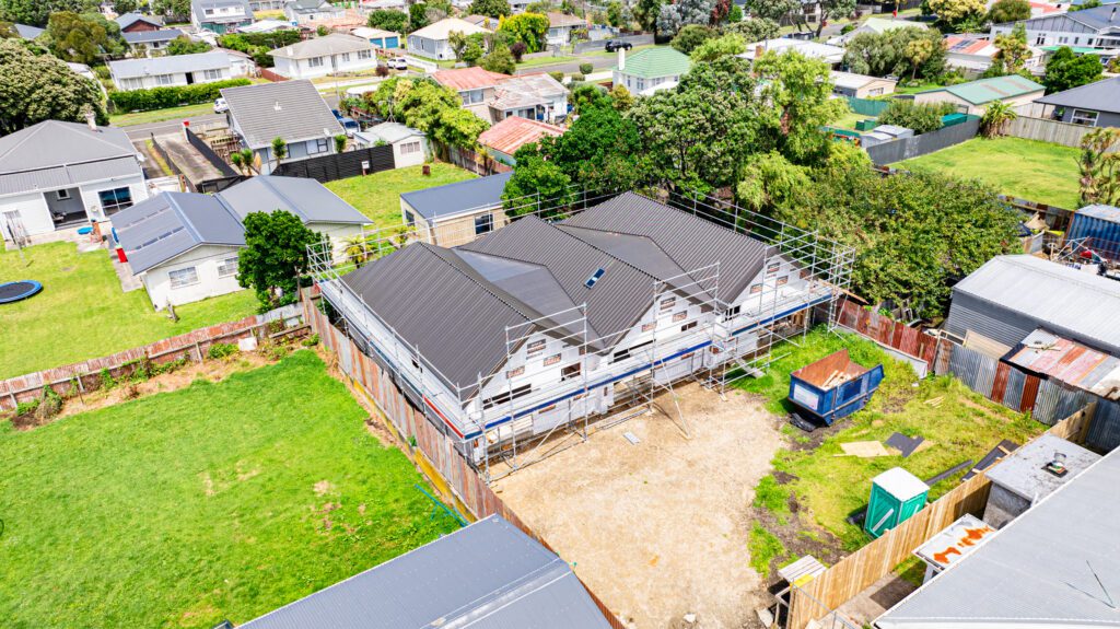 At our Puriri Street triplex, we wrapped up 2025 with the roofing all done, and now the units are ready for windows and doors to go in.